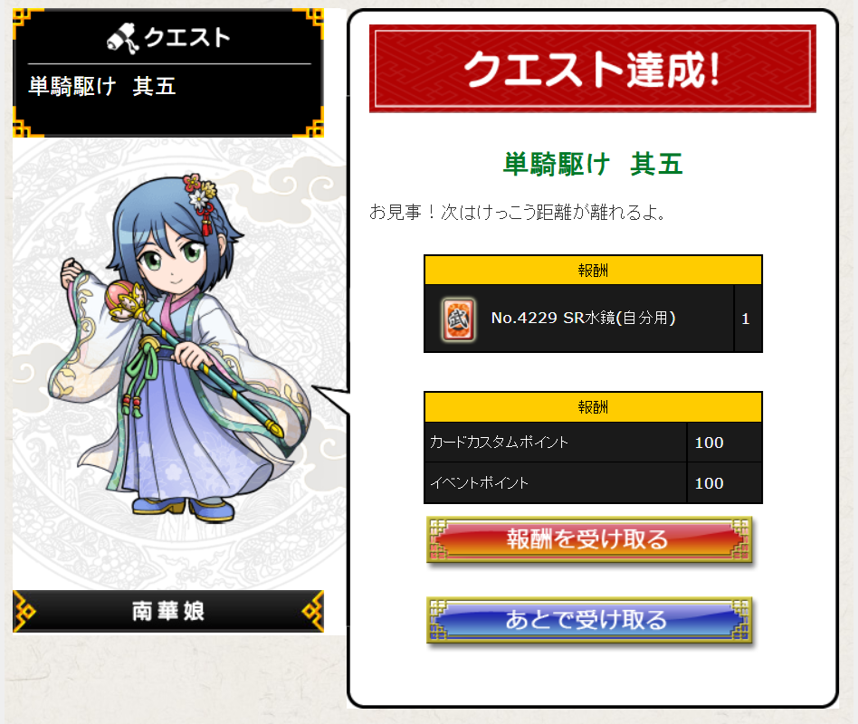 距離50の☆9クエをクリア