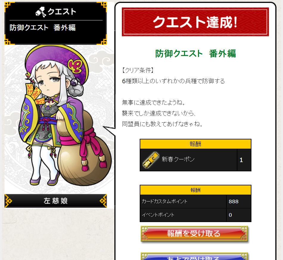 条件は6種類以上の兵科で敵襲を受けて防御すること。