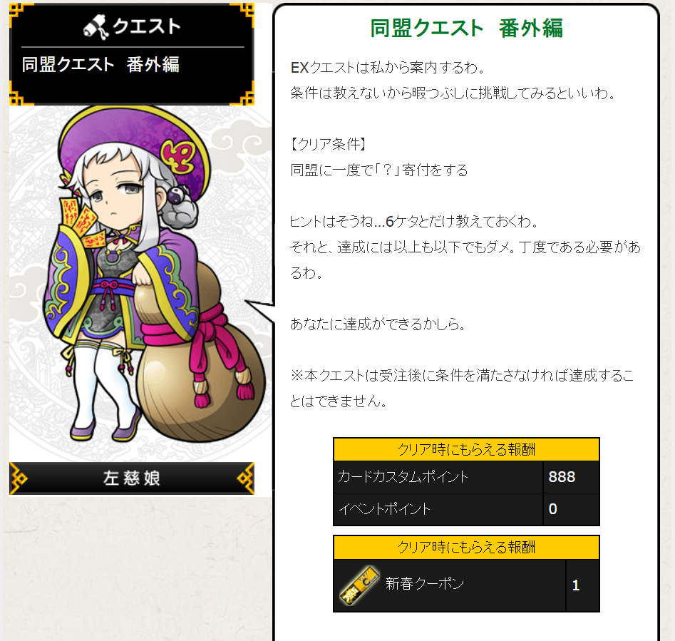 数字がわかれば一番楽なEXクエである同盟寄付。