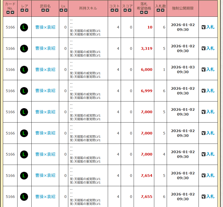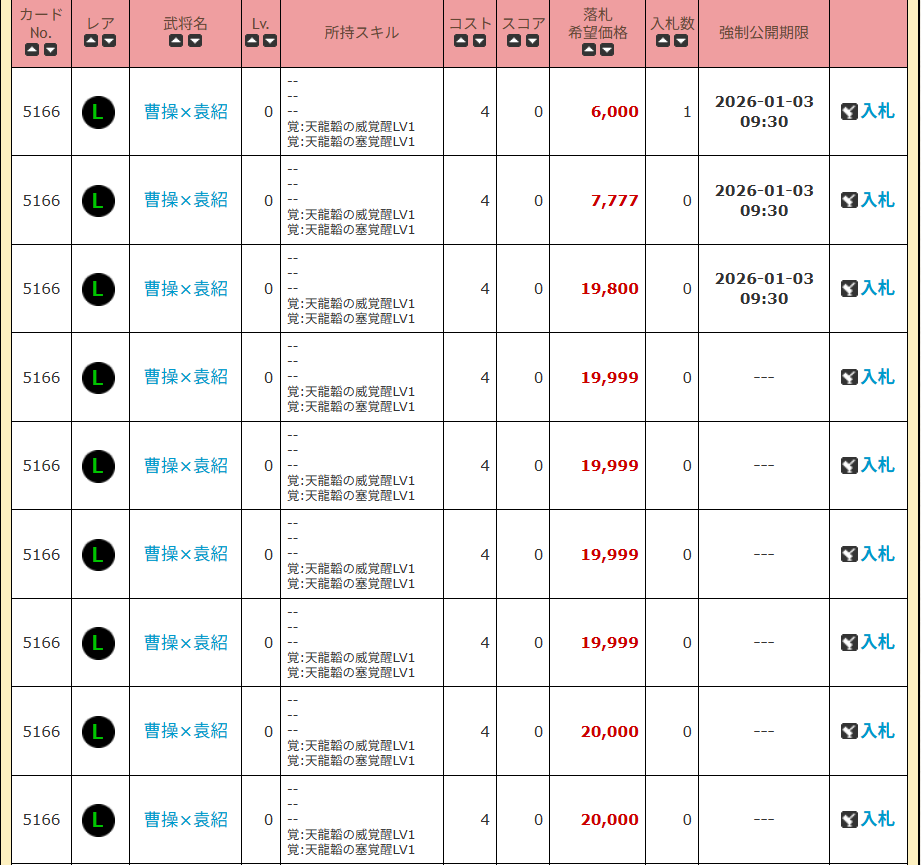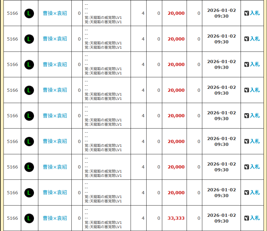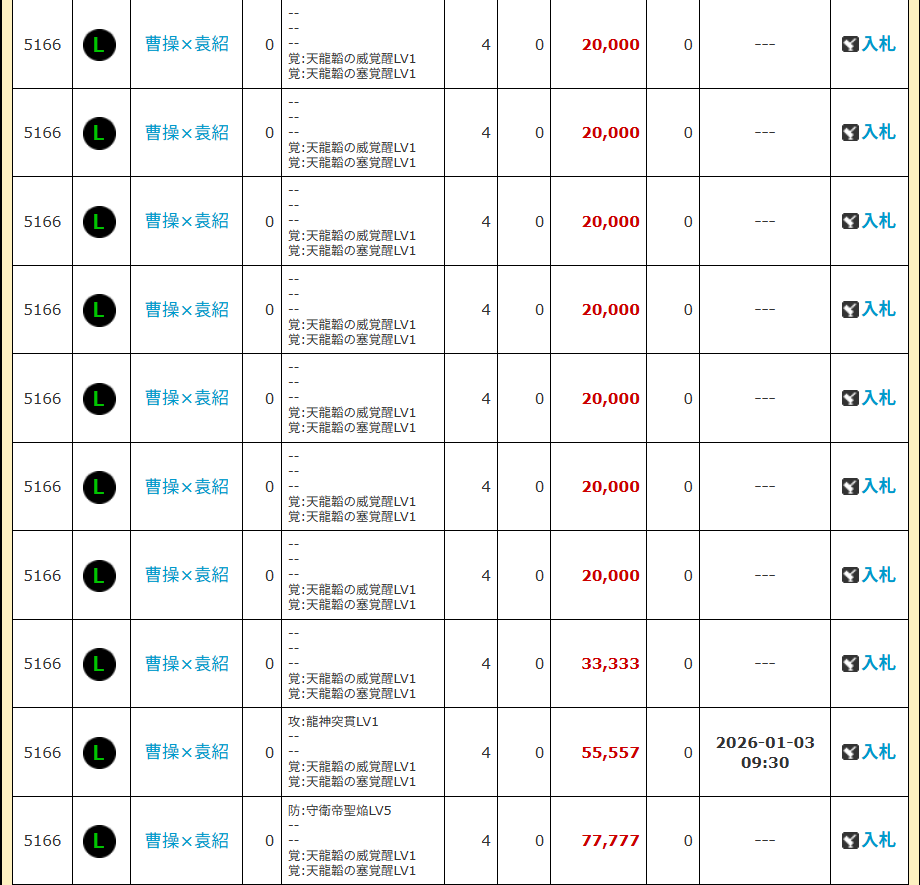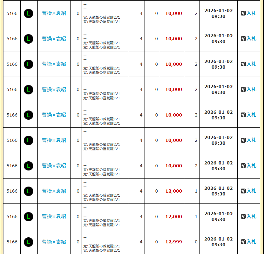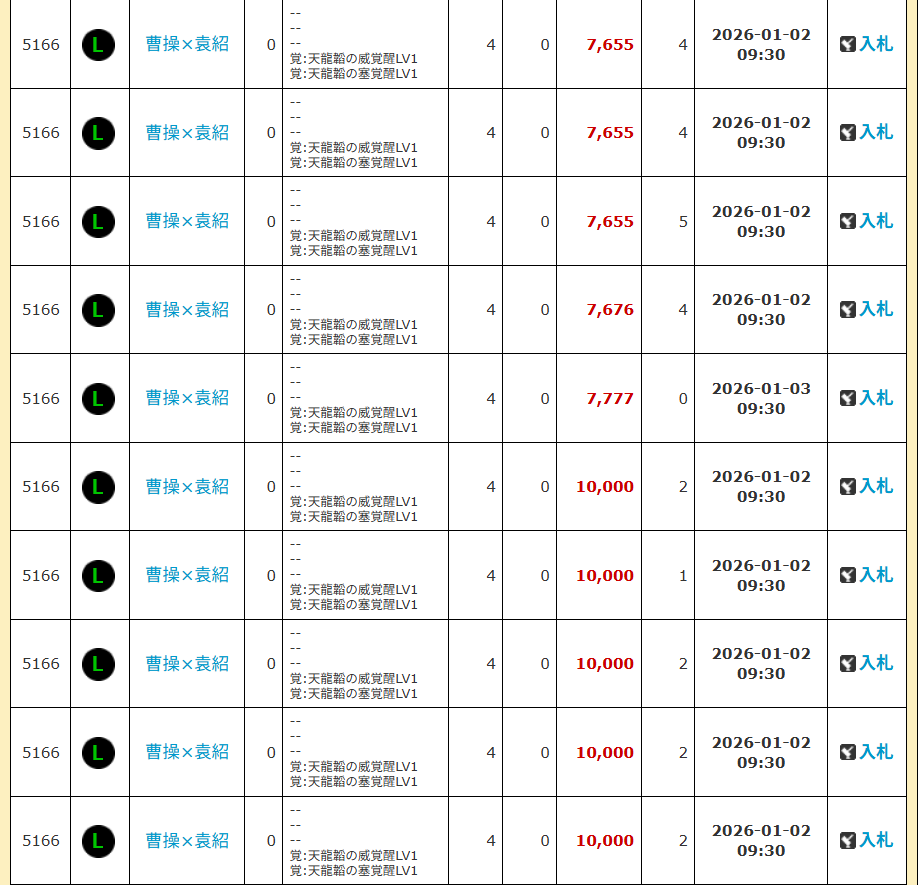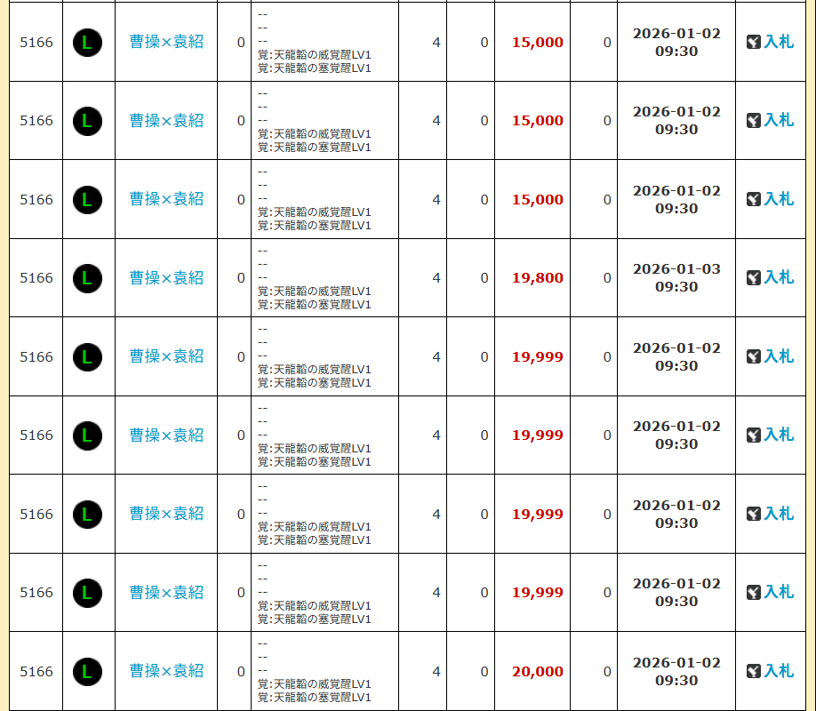 明日締め切りの分を除けば、売れ残っている最低価格が1万9999TP。