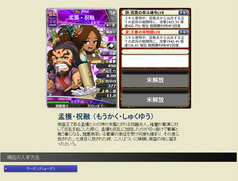 | SL孟獲・祝融 | 2 | 武 | 究竟の帝斗魂令・明鏡 |