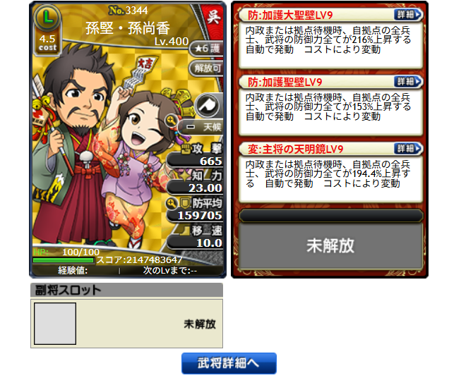 加護大聖壁持ちのL孫堅・孫尚香です。