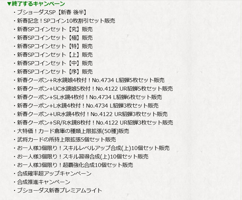 今日のメンテで終わる合成確率超アップキャンペーン。