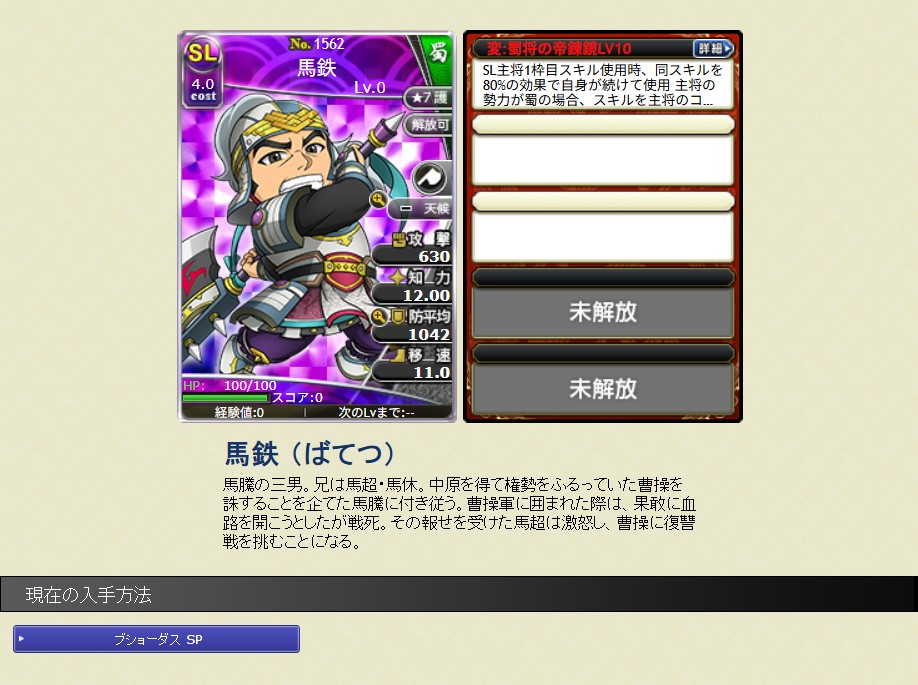 馬鉄にはあんまり防御のイメージ無いけど、SLの防御系蜀将の副将として活躍してくれることでしょう。