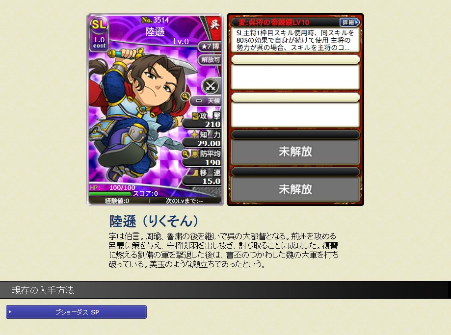 | SL陸遜さん | 1 | 博 | 呉将の帝錬鏡 |