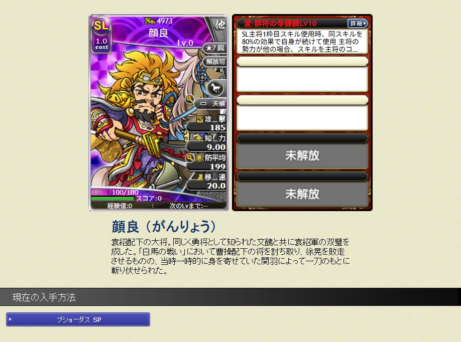 | SL顔良 | 4 | 鋭 | 群将の帝錬鏡 |