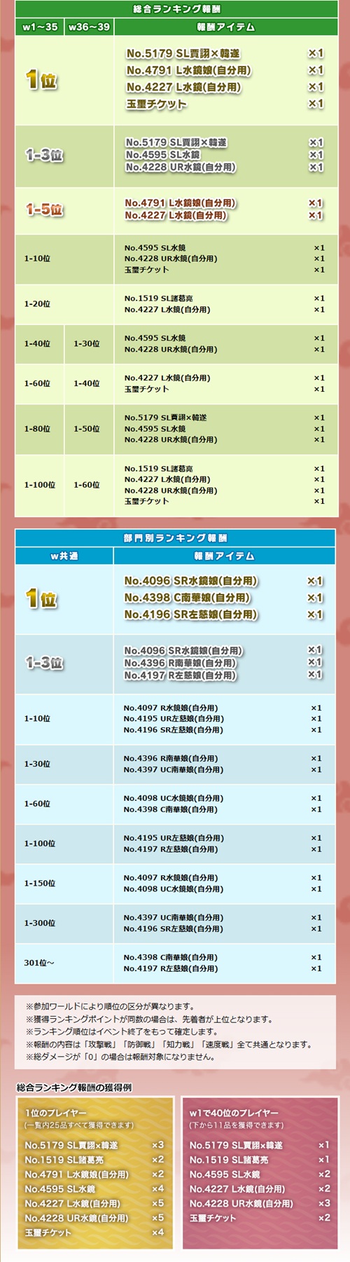 上の方の順位の場合、下の順位の報酬もゲットできる仕様です。