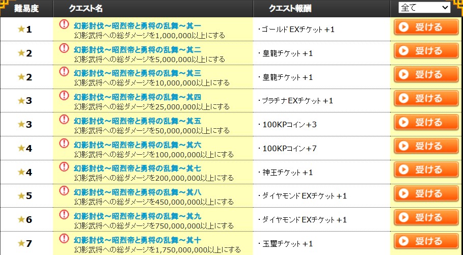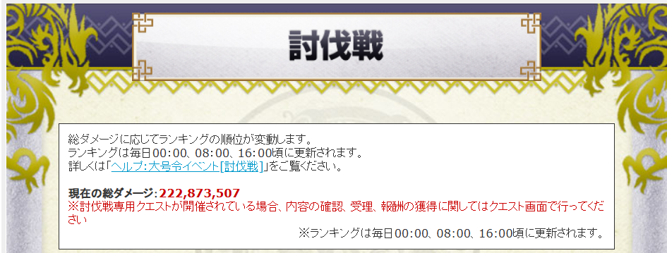 大号令イベント[討伐戦]~昭烈帝と勇将の乱舞~1日目の結果晒し