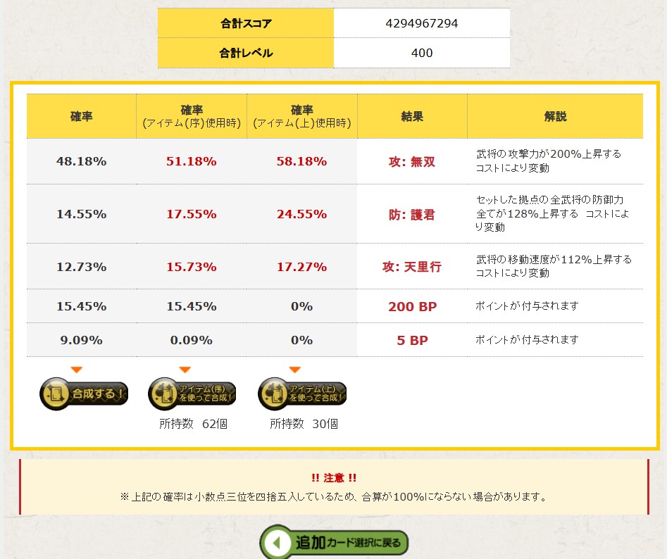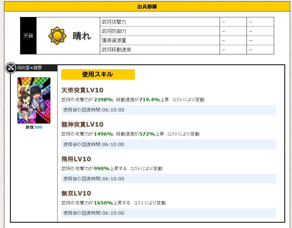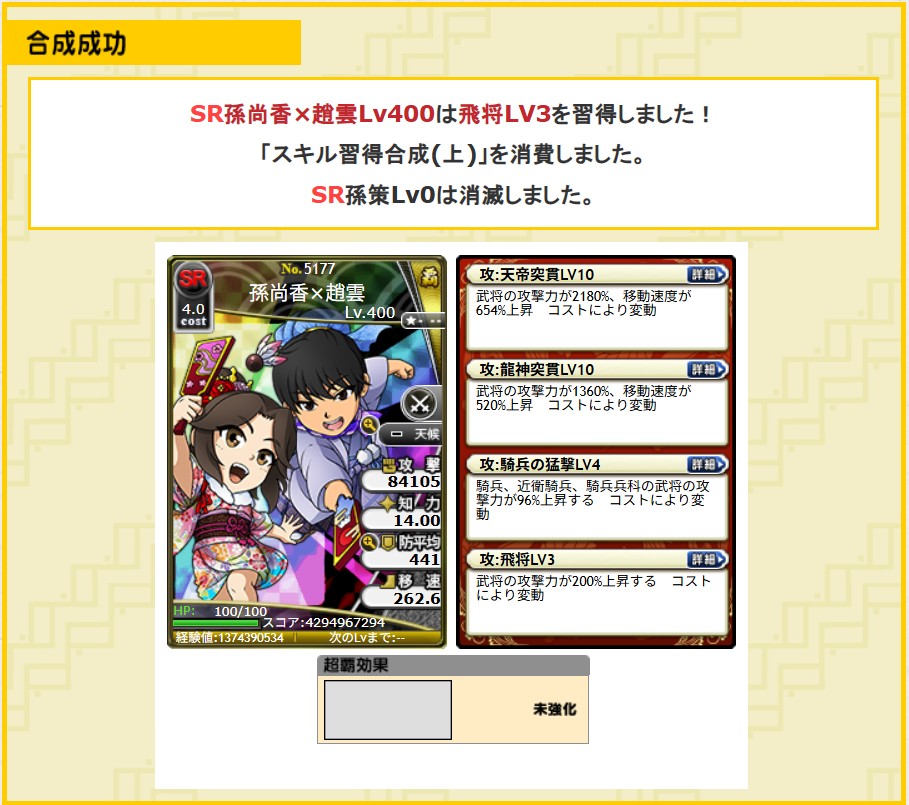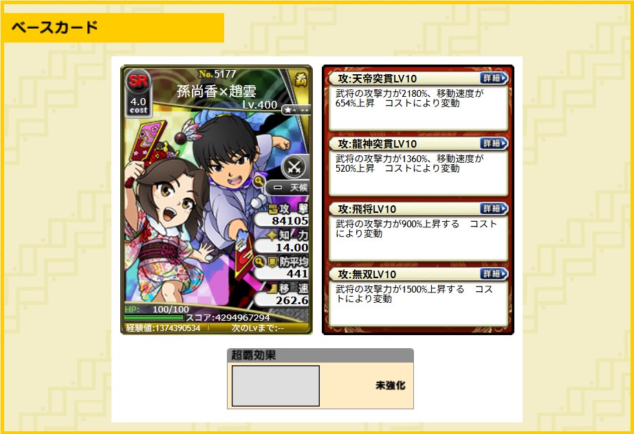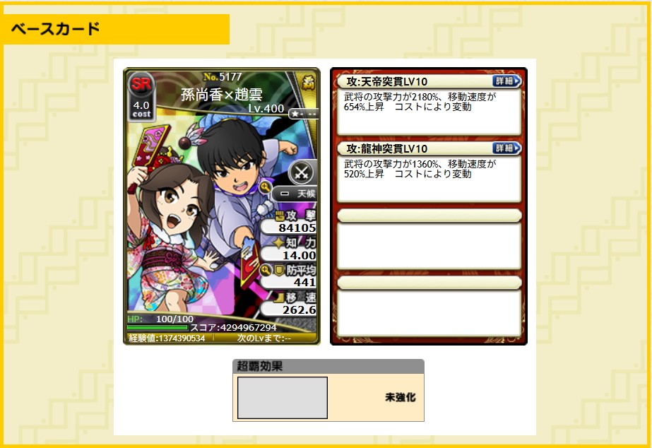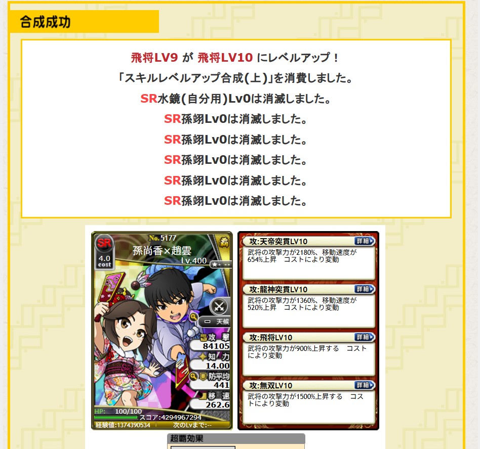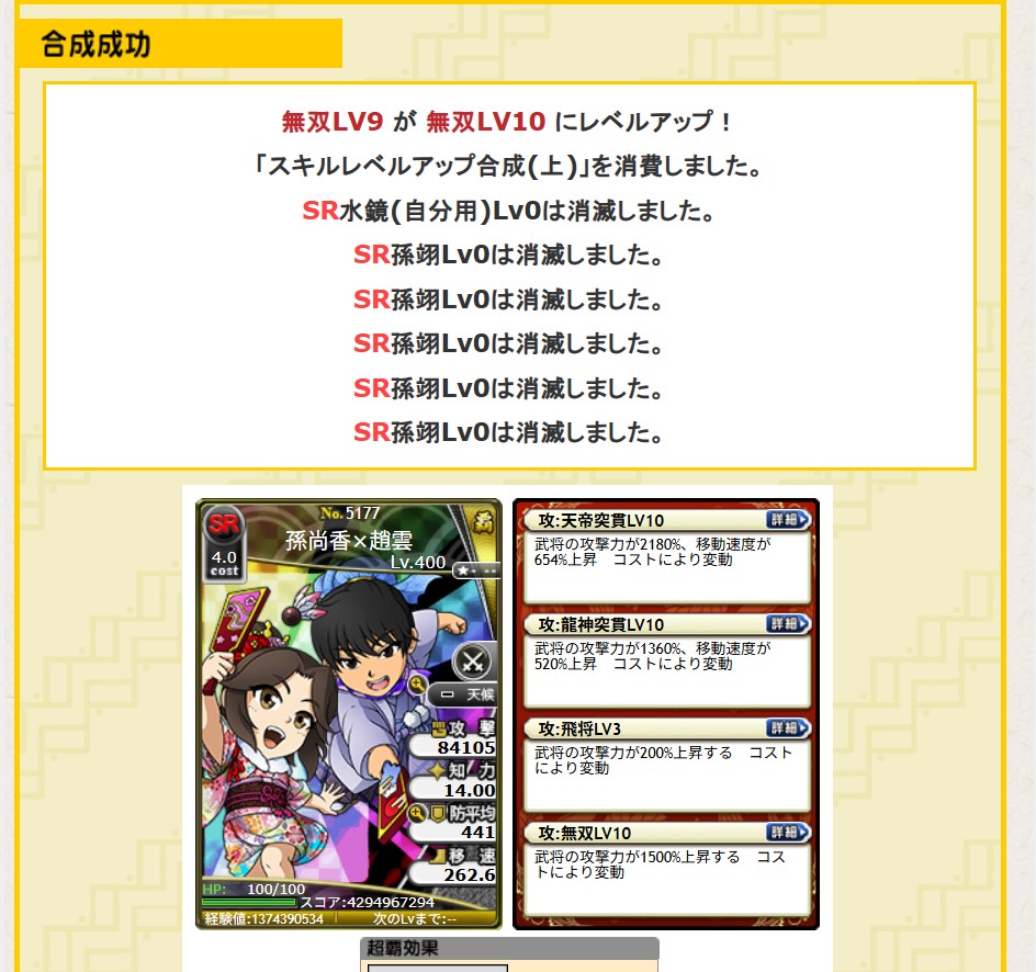 前回スキルレベルを上げて単騎攻撃力(武将攻撃力)を上昇されたこのカード。
