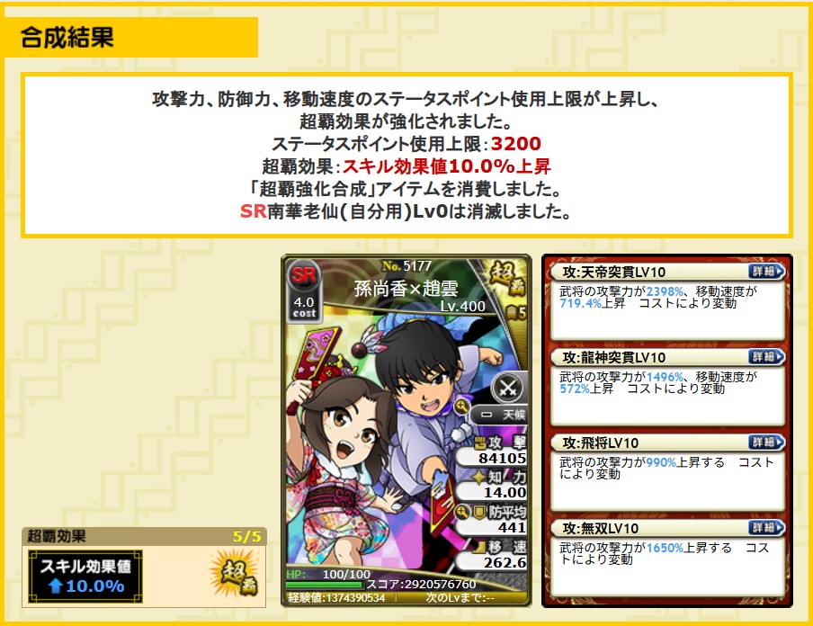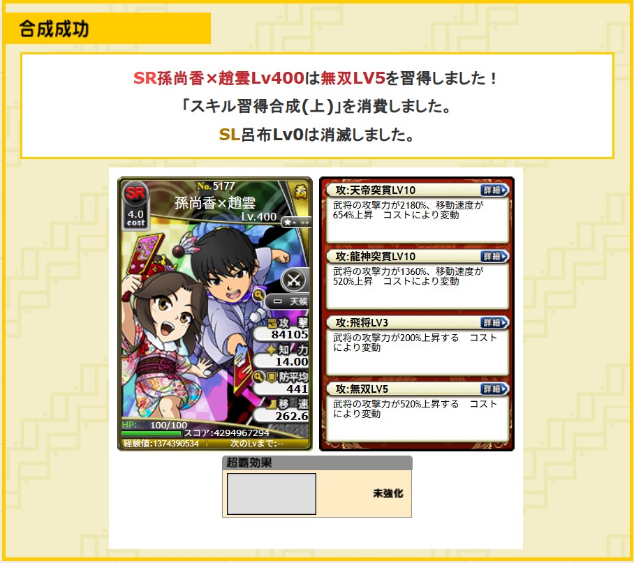 まあ、無双を付与できるSL呂布を期限内に破くの忘れてBP+にできなくなったので、その使い道として白羽の矢が立っただけなんですけどね。