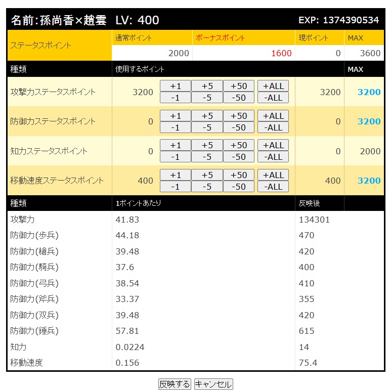 ちなみにうちの単騎エースの攻撃力がこちら。