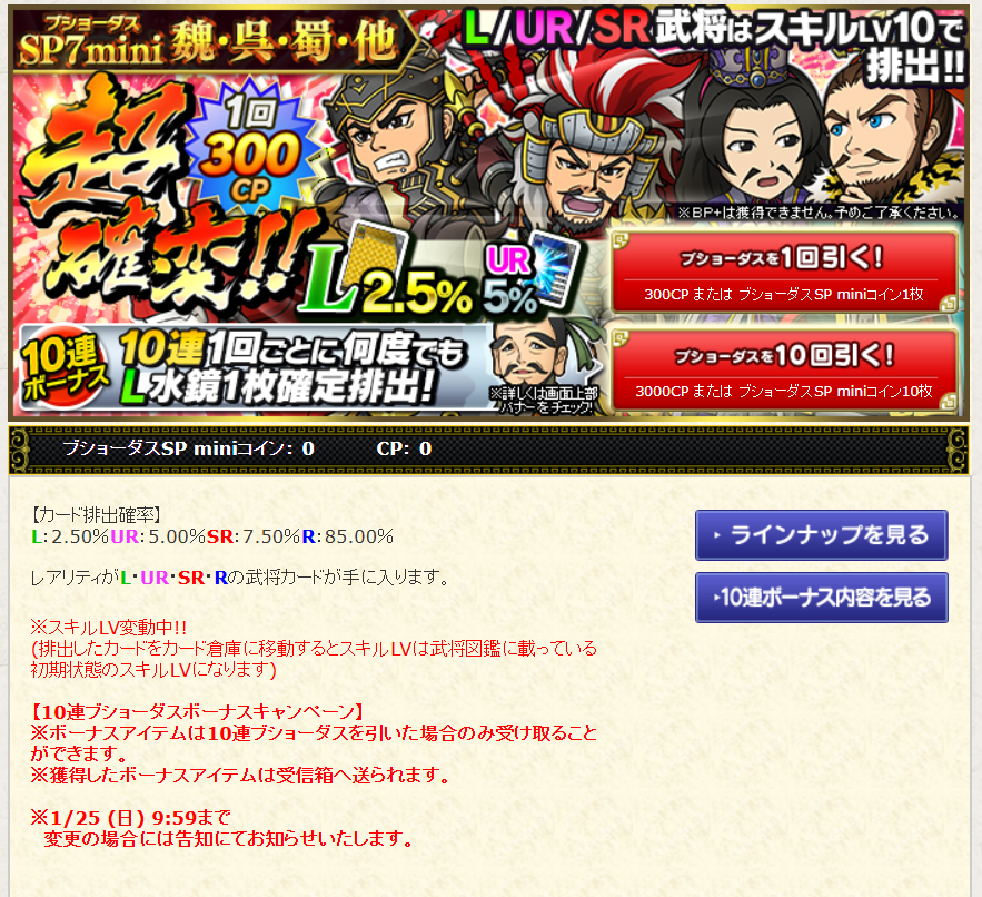 新しいダスキャンペーンとして「SP7mini魏呉蜀他」が開始となりましたよ。
