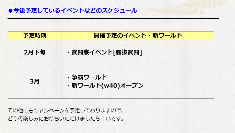 先日運営さんから2026年2月と3月のイベント予定がアナウンスされました。