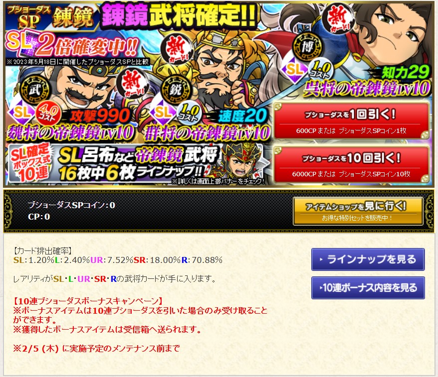ブショーダスSP【錬鏡】の10連ボーナスカード紹介