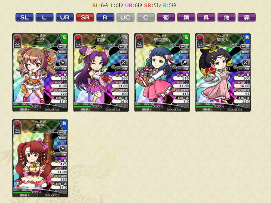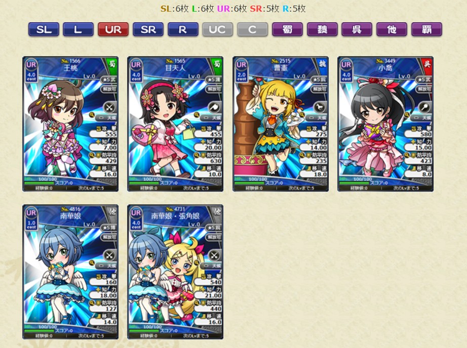 ・No.4619 SL南華老仙 南華達識LV1 ・No.4595 SL水鏡 水鏡達識LV1 ・No.4369 L南華老仙(自分用) 南華透察LV1 ・No.4232 L水鏡 水鏡透察LV1 ・No.4368 UR南華老仙(自分用) 南華鑑定LV1 ・No.4079 UR水鏡 水鏡鑑定LV1 ・No.4367 SR南華老仙(自分用) 南華眼識LV1 ・No.4080 SR水鏡 水鏡眼識LV1 ブラウザ三国志より引用
