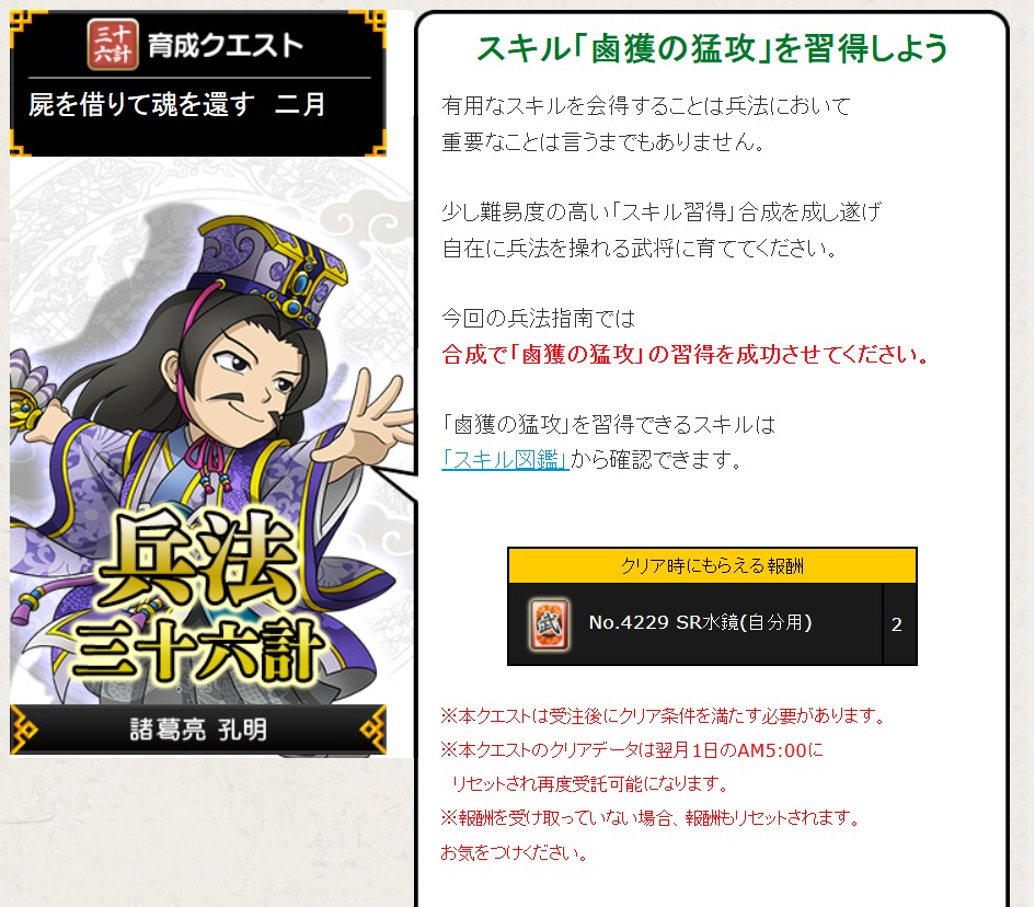 今月もSR水鏡(自分用)2枚ゲットするために付与系の育成クエにチャレンジです。