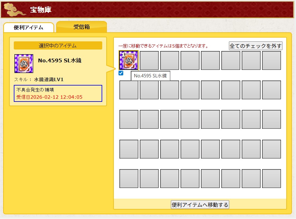該当される方は宝物庫の受信箱をご確認ください。