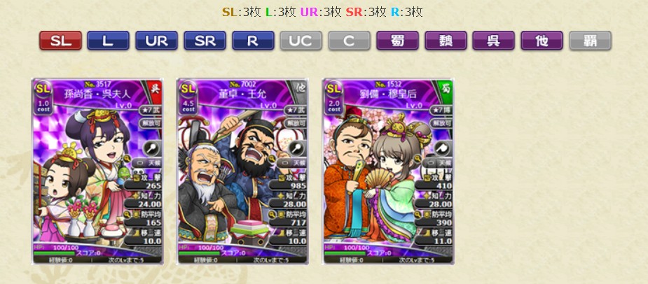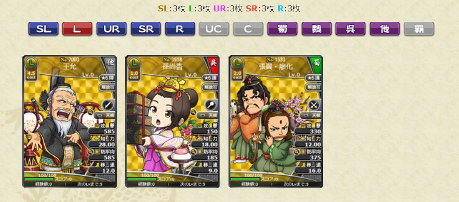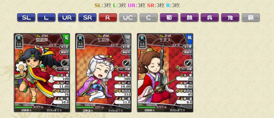 下位レアリティには領地統制や拠点統制持ちがラインナップされており、あれば便利なので持ってない方はそれらを狙っても良いかも。