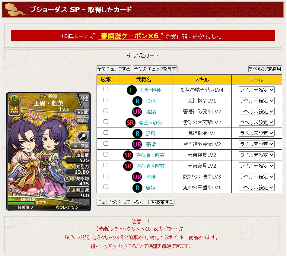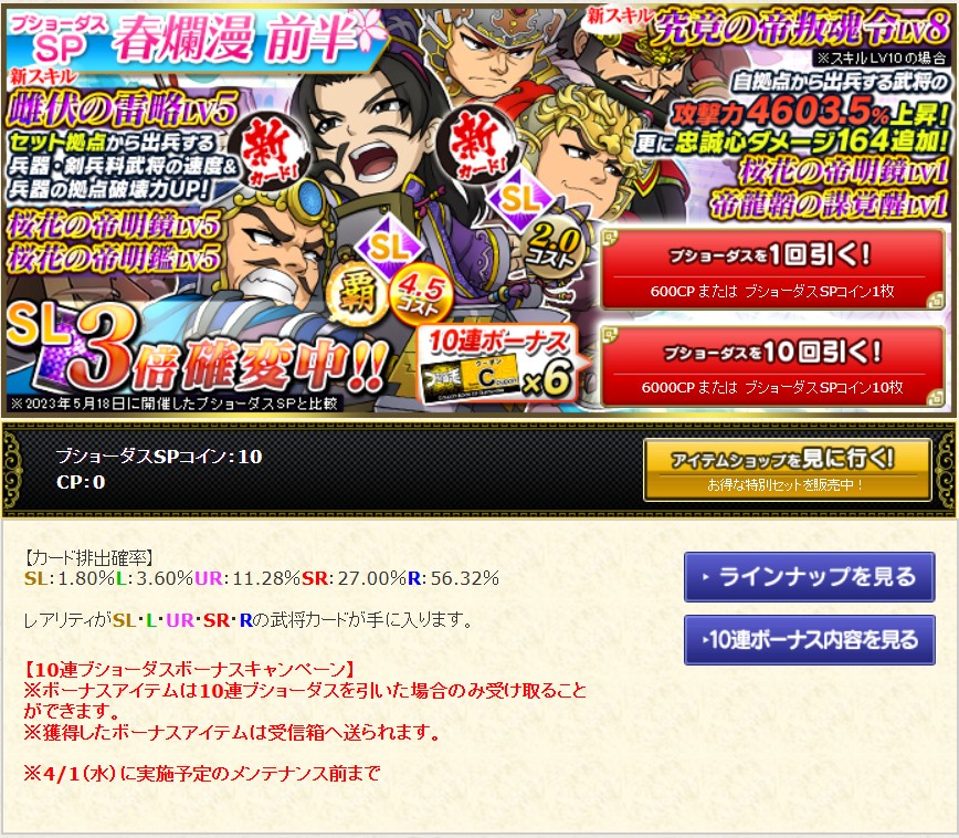 まずはSP春爛漫前半10連でクーポンゲットです。