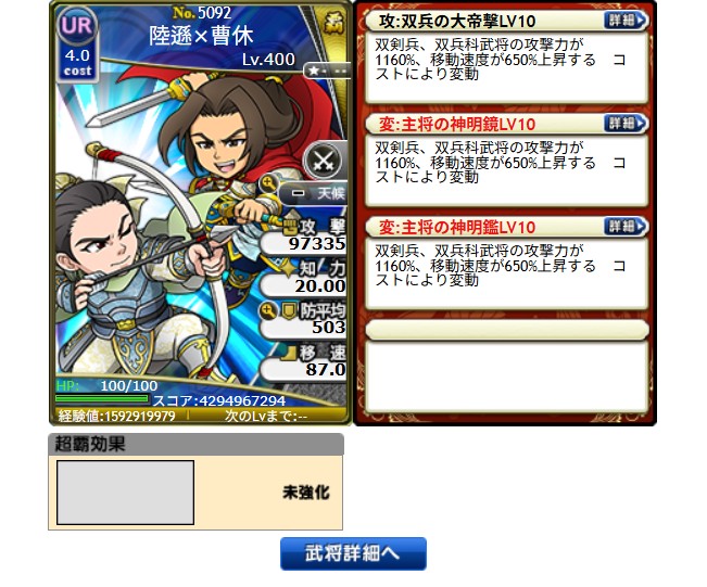 どちらも帝撃持ちで明鏡が2つ付いててスキルレベルがオール10(斧兵の方は天撃も付いてる)。