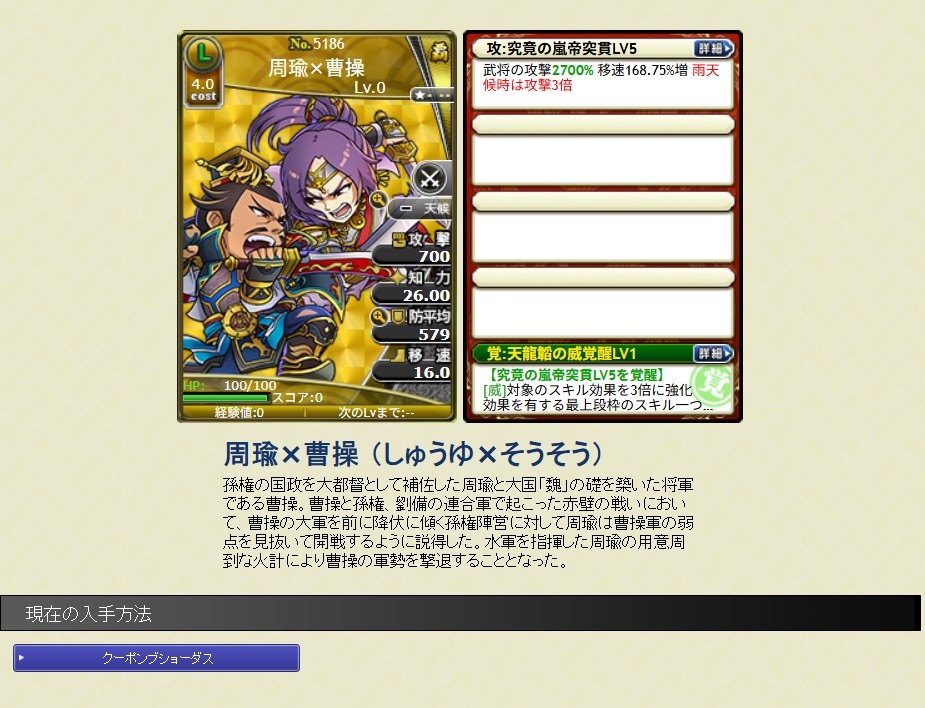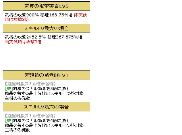 初期スキルは究竟の嵐帝突貫とブースト【威】。