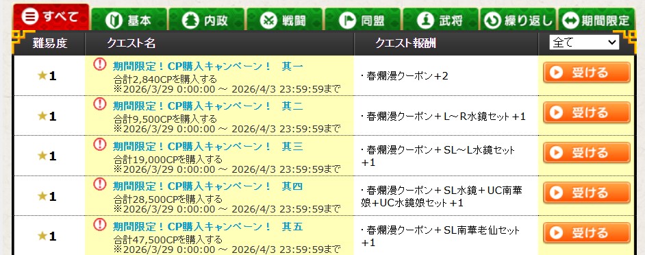 日頃は、ブラウザ三国志をご愛顧いただき誠にありがとうございます。CPの購入で特別クエストをクリアできる
