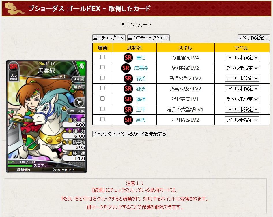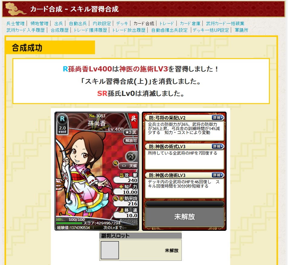 神医の施術の付与材料であるSR孫氏が2枚キタ――(゚∀゚)――!!