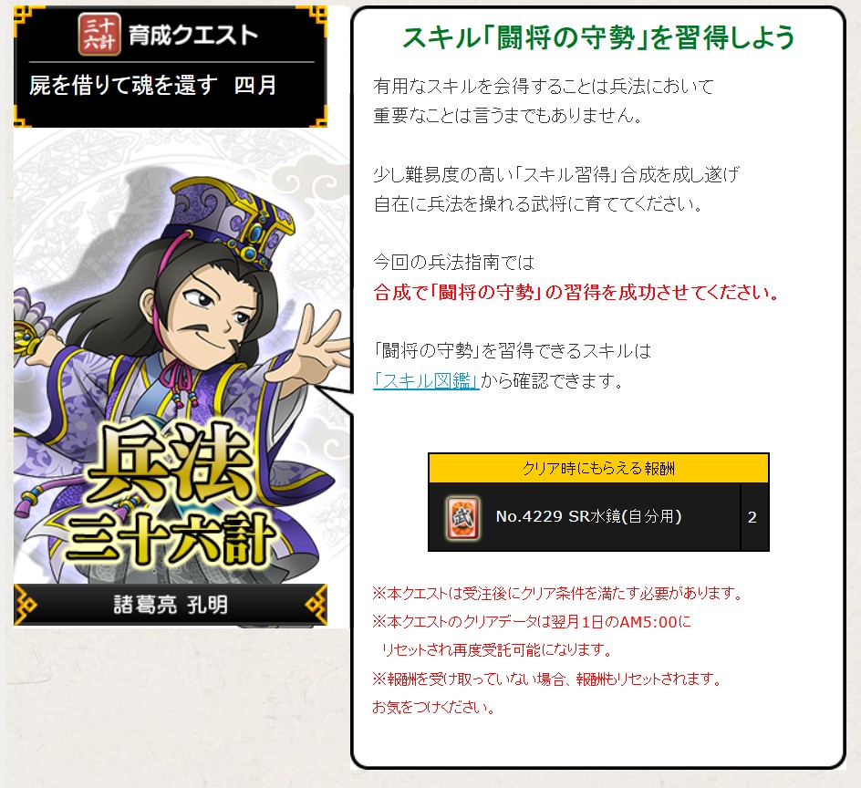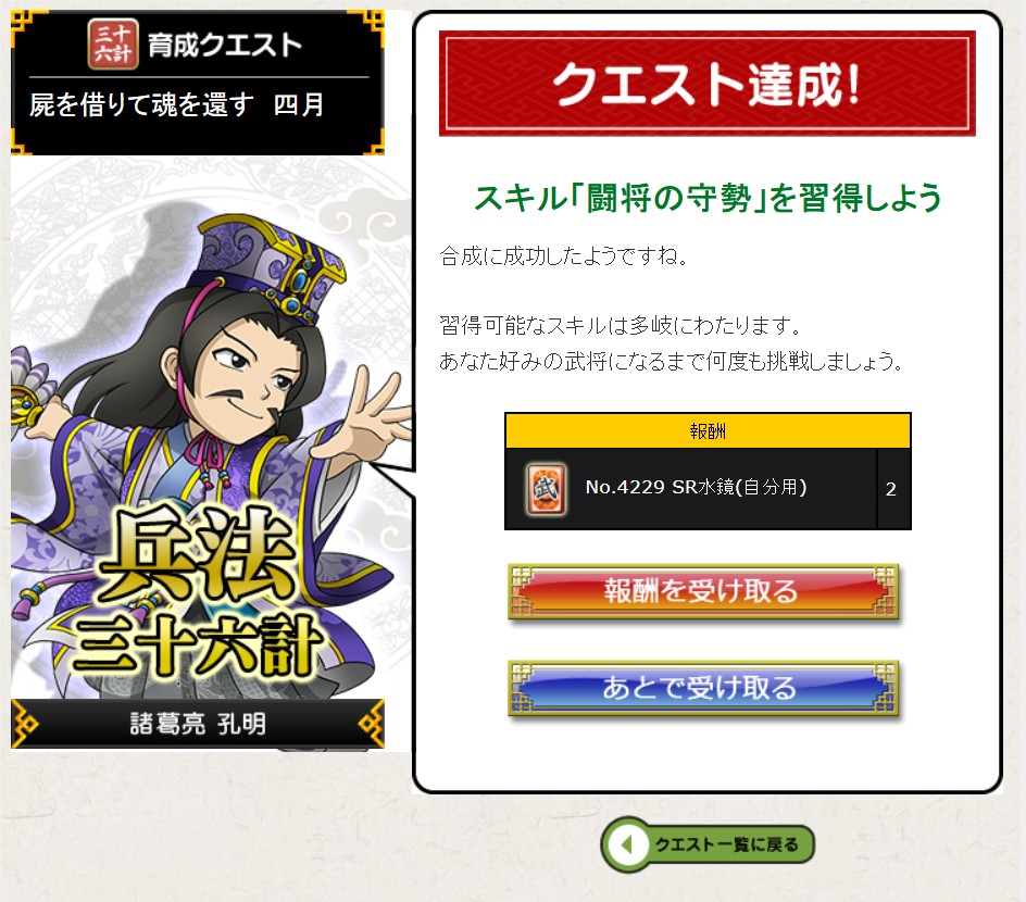 今月もSR水鏡(自分用)2枚ゲットするために付与系の育成クエにチャレンジです。