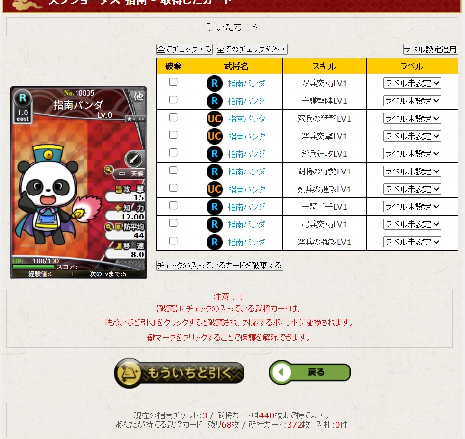残りの指南チケットが3枚だから、110枚引いて何とか1枚ゲットしたことに。