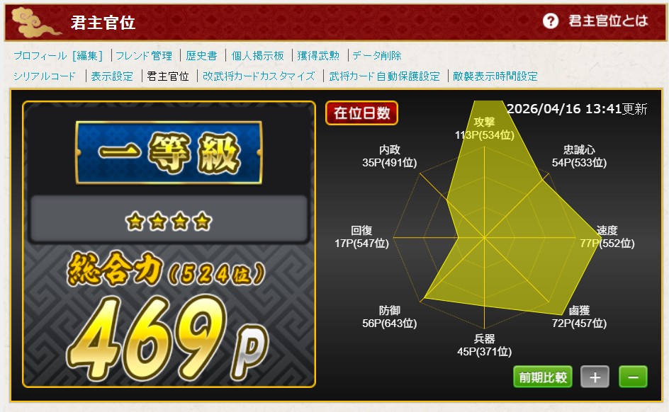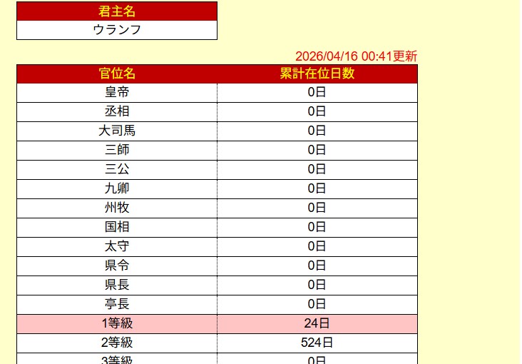 2026年4月の私の君主官位は?