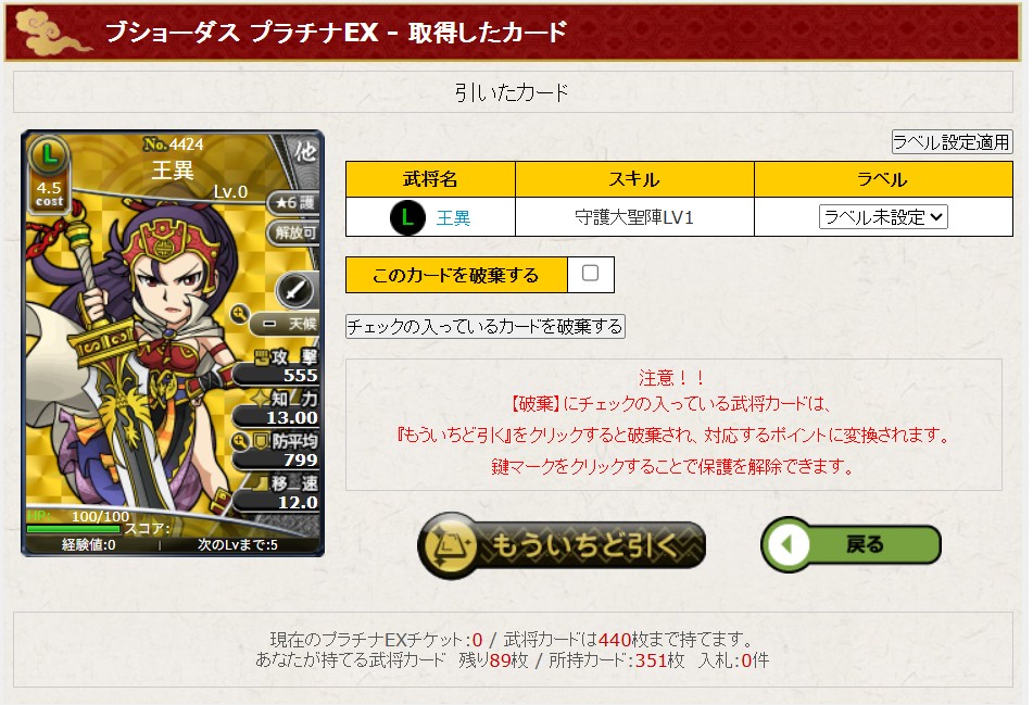 今期から呉軍の防衛デッキのメインカードを変えたので防御力もアップ。